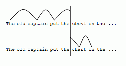 Например, на рисунке 5 лучшей точкой фиксации является буква s в слове Roadside. Читатель может распознать слово Roadside, первичную информацию о первых нескольких буквах в слове joggers, также как и получить полную информацию о длине слова joggers.